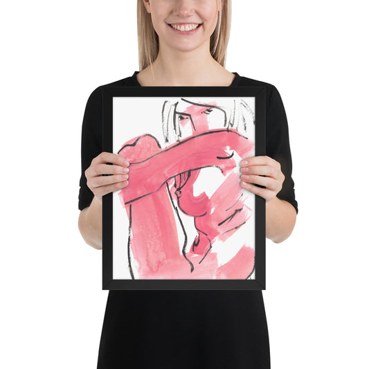 Midnight Bloom: A Black and Pink Ink Creation (Framed poster)