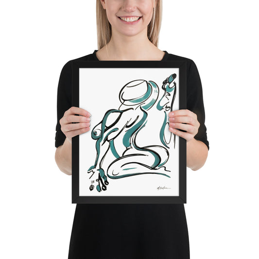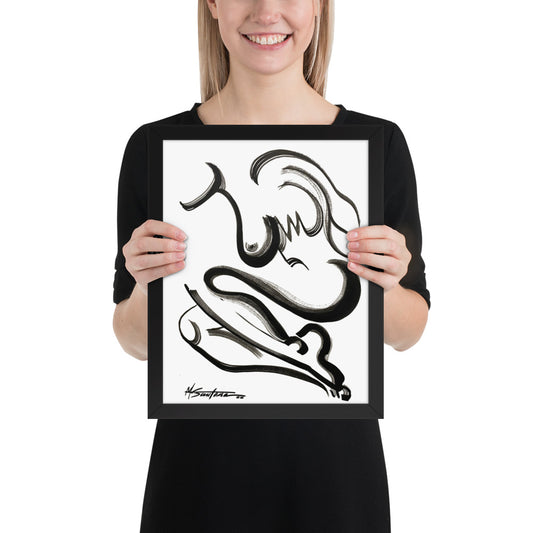 Sensual Contrast: Nude Beauty on Yellow background (Framed poster)